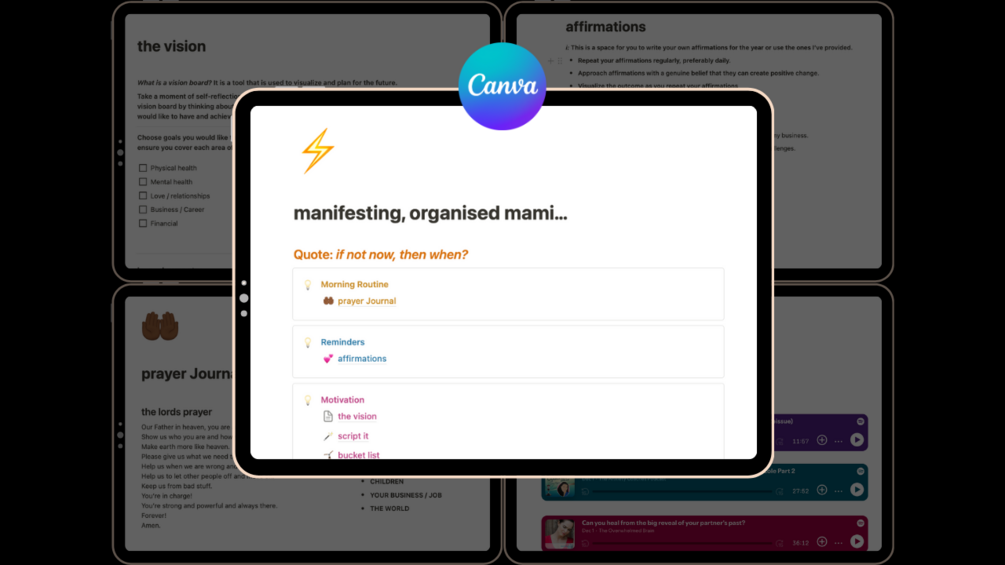 - Vision Board Page: Visualize your dreams and aspirations effortlessly with a customizable vision board, turning your goals into a tangible reality.